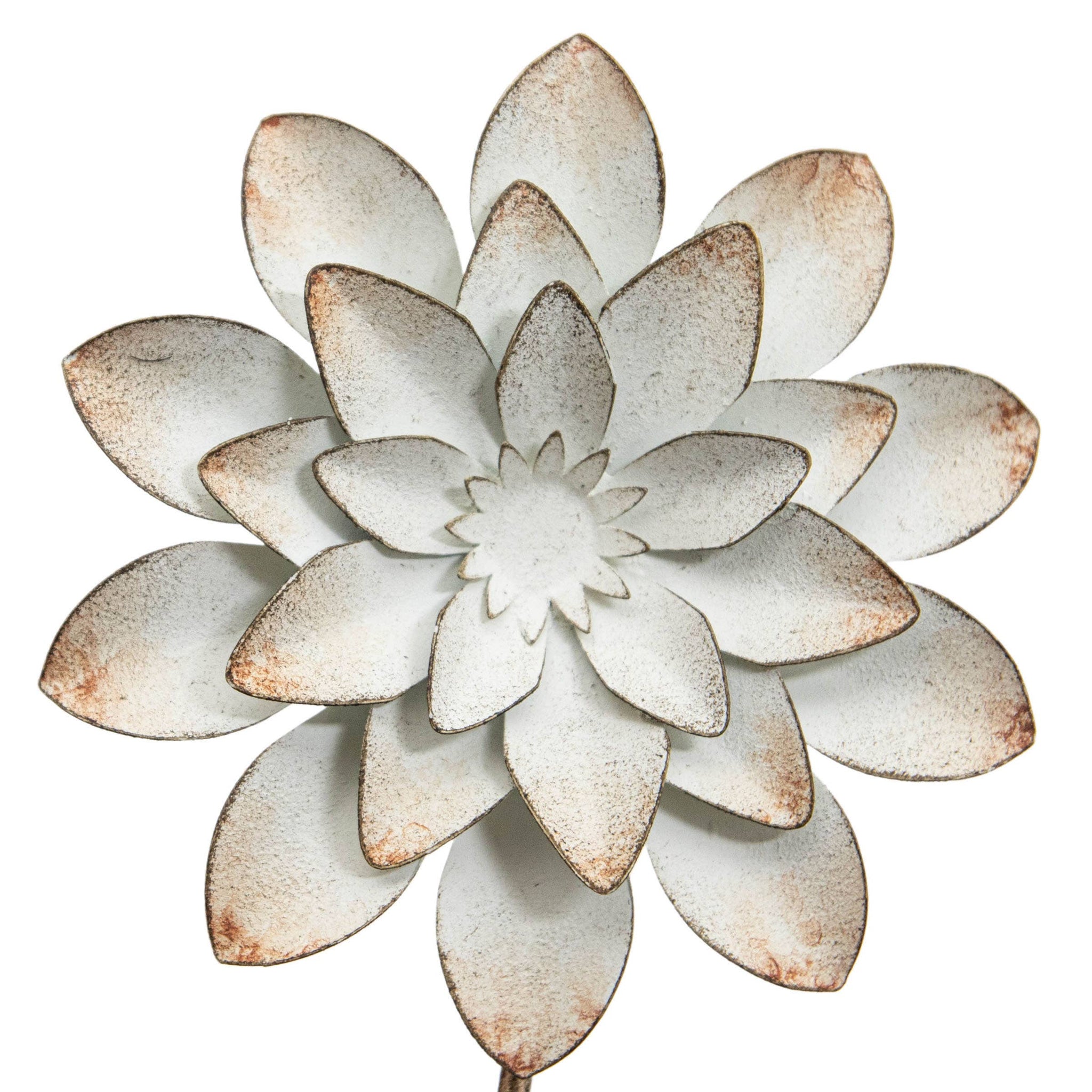 -Layered metal florals in a matte white with antique bronze brushing over the petals.
