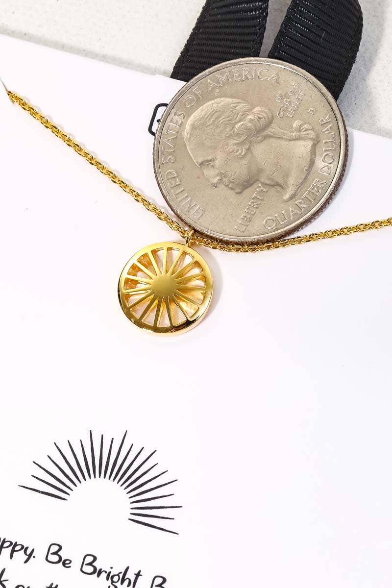 A trending in season must have necklace features a circle sun pendant necklace design. Perfect as a gift for a loved one! Available in G. This item is sold in packs of 1. Made In Korea.