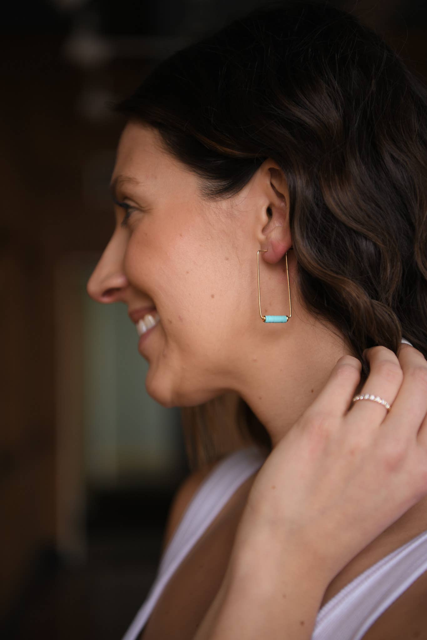 Eventide Rectangular Gold Lightweight Hoops: Turquoise