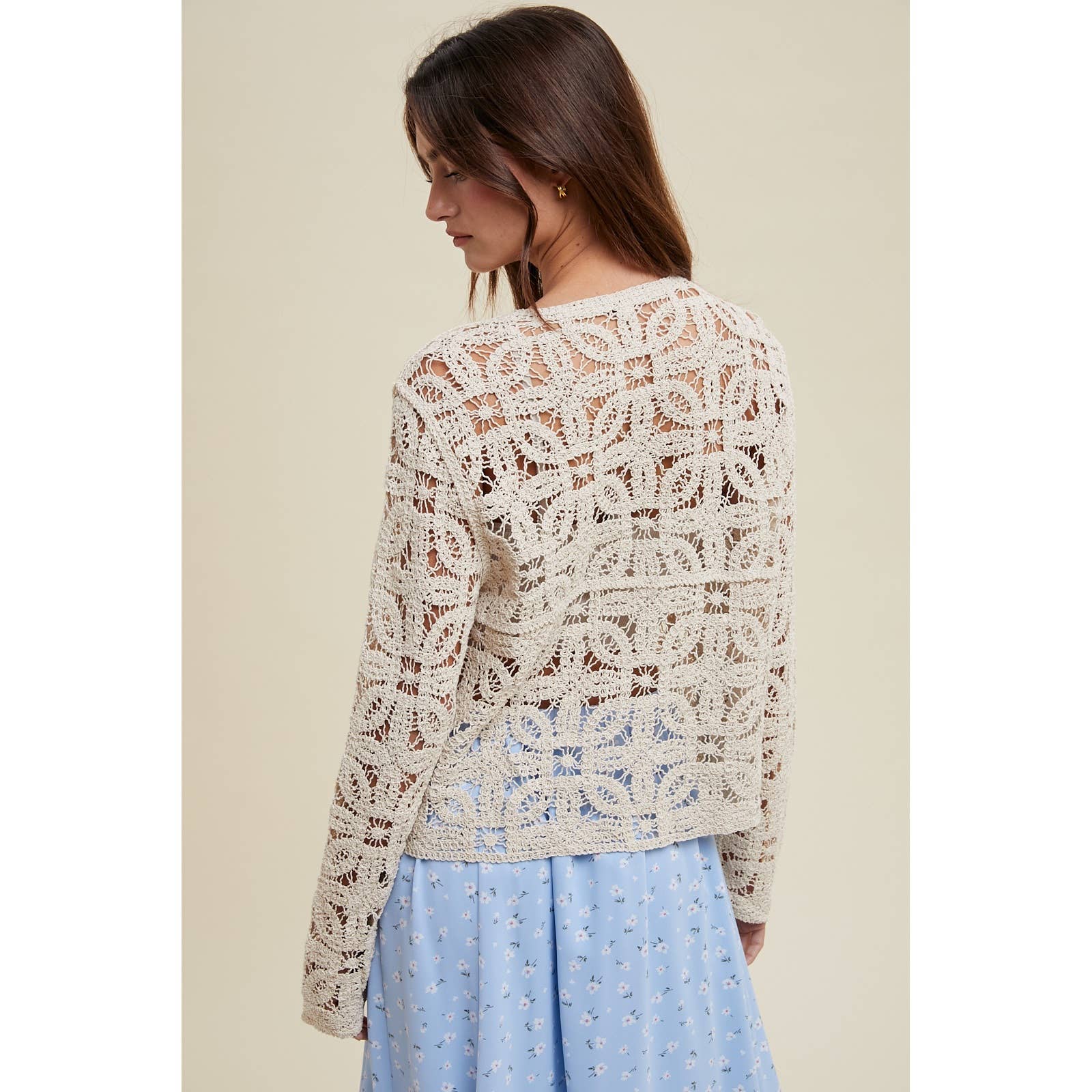 FLORAL LACE CARDIGAN - FUNCTIONAL BUTTONS, SEMI-SHEER, LONG SLEEVE, LIGHTWEIGHT, CASUAL 100% COTTON * Due to lighting and differences in monitors, actual colors may vary slightly from what appears online.