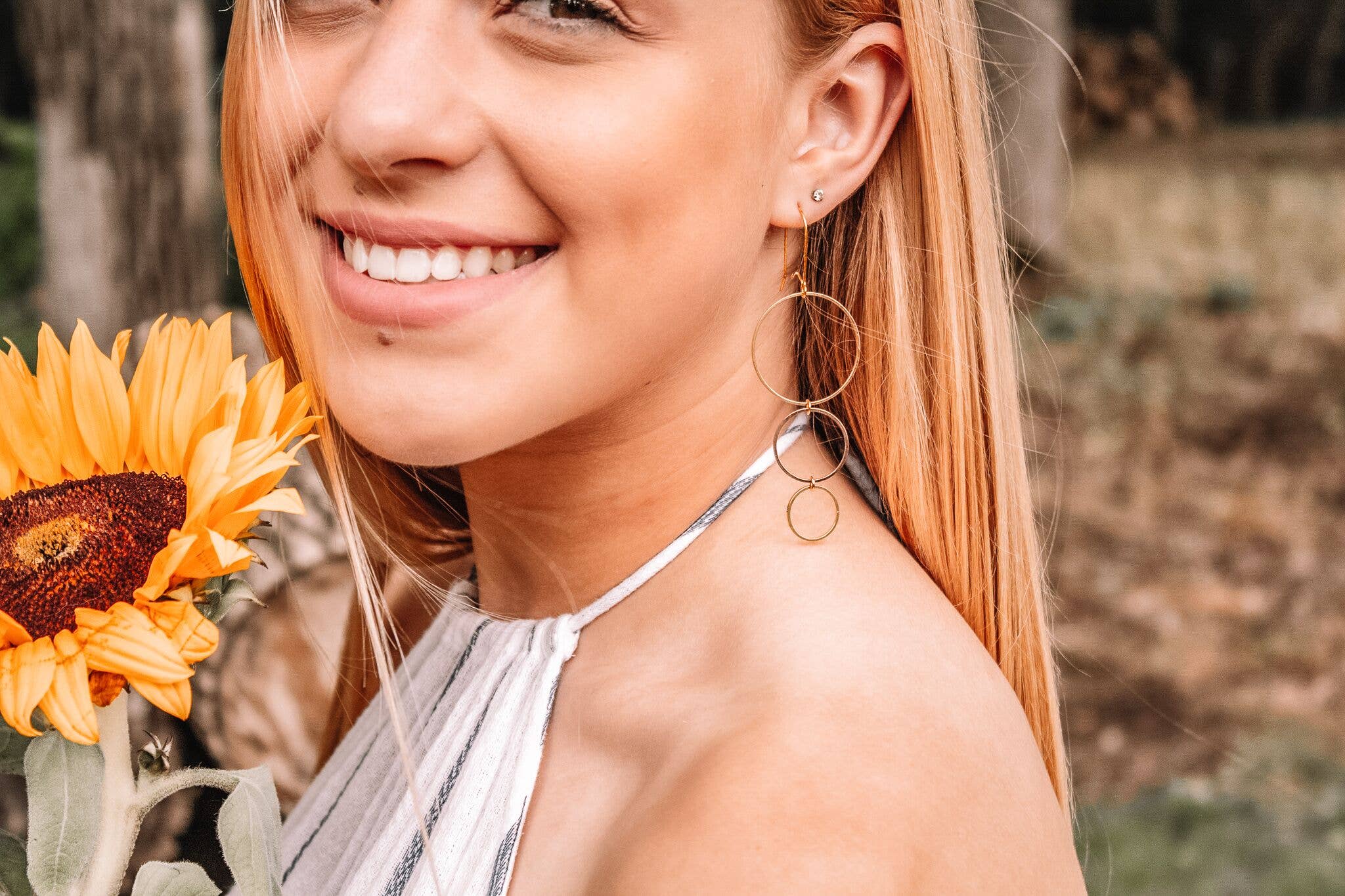 Gold plated triple hoop Lightweight earrings. One Tree is planted with each purchase. Made in Minnesota.