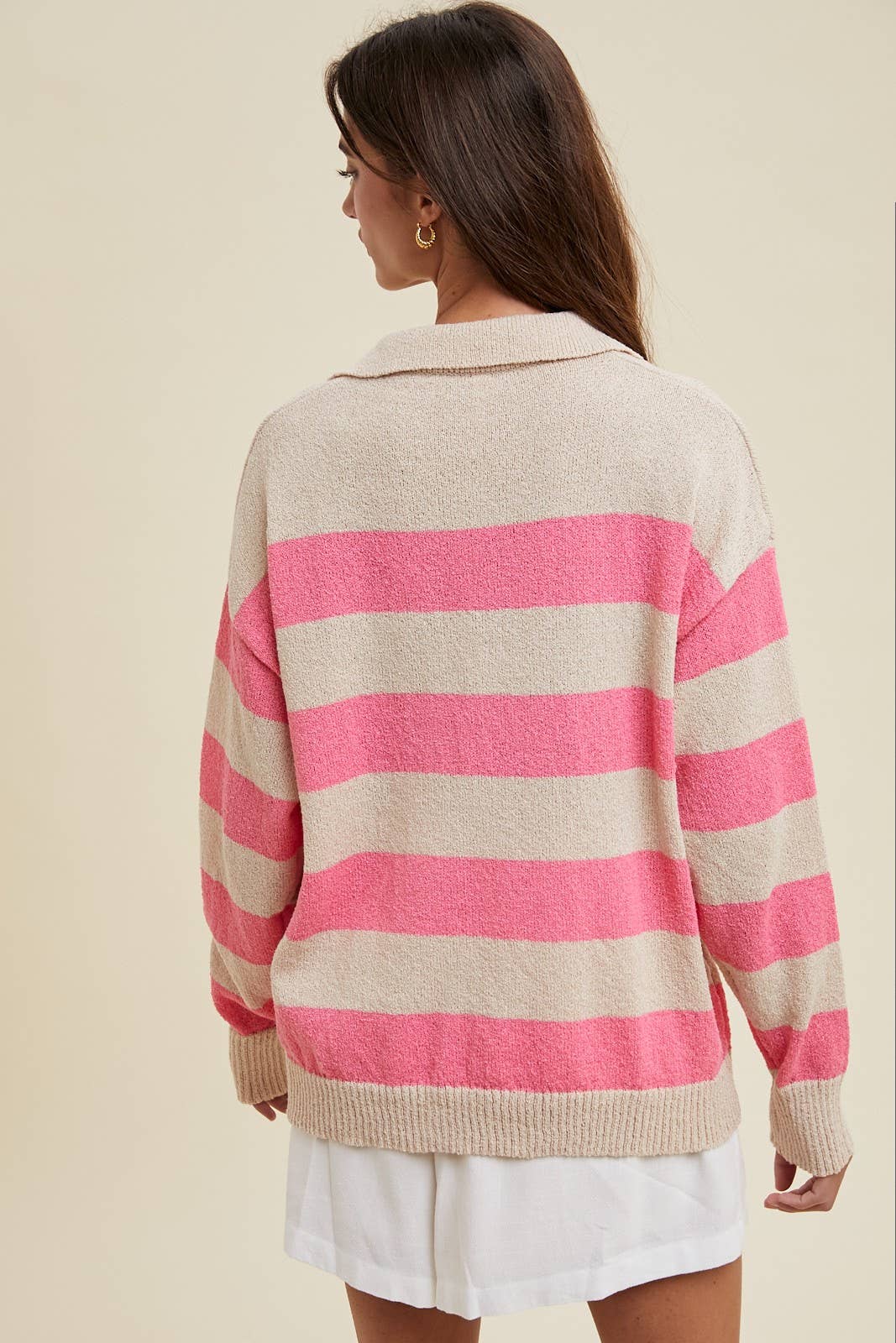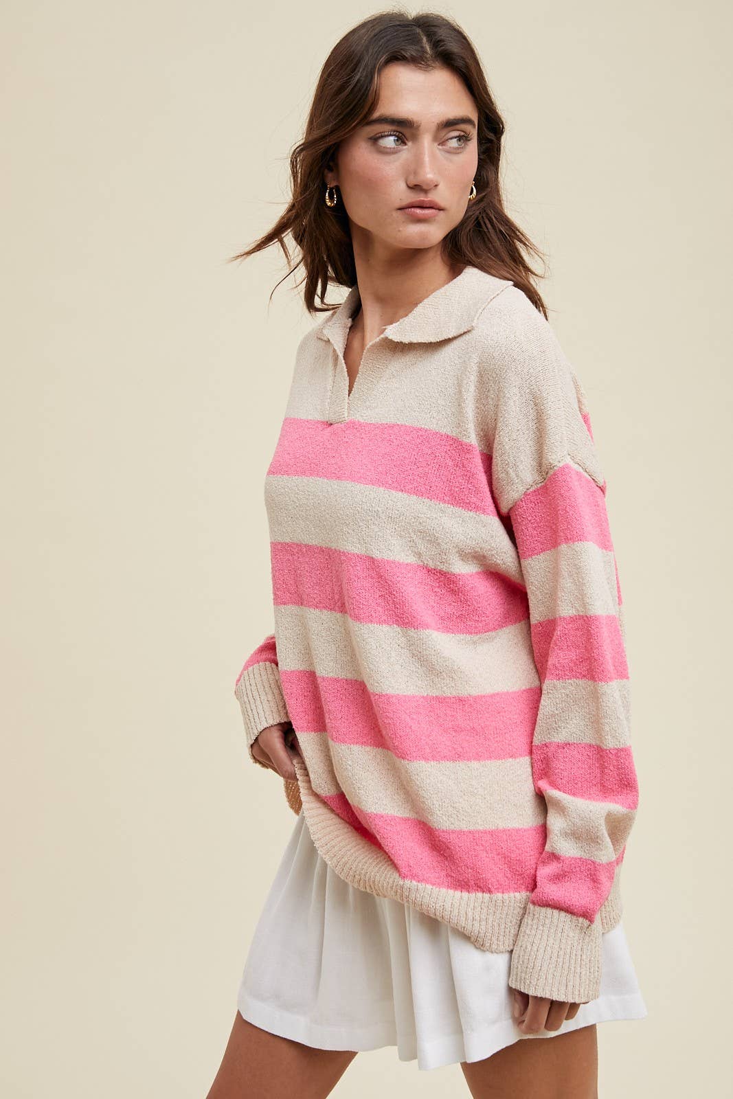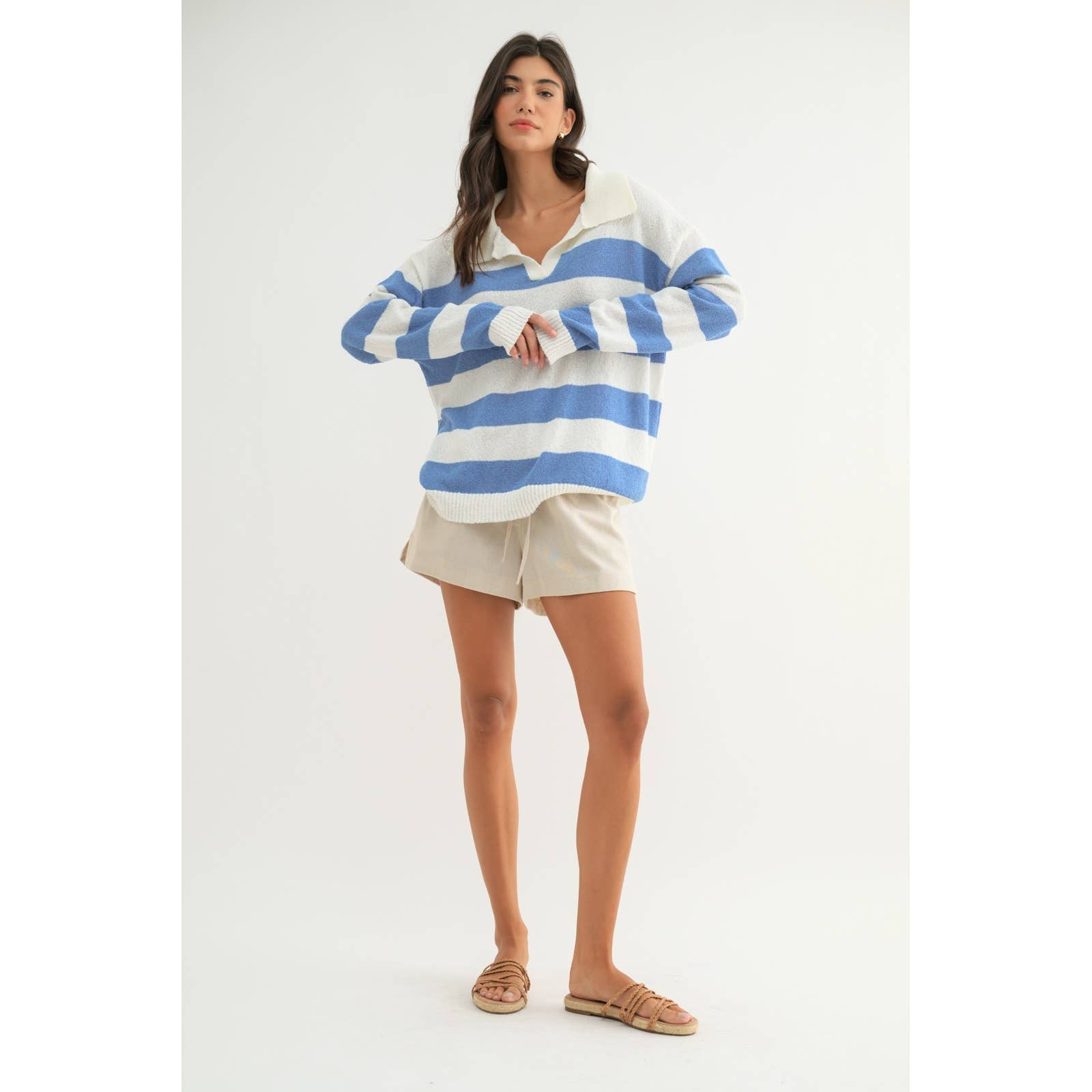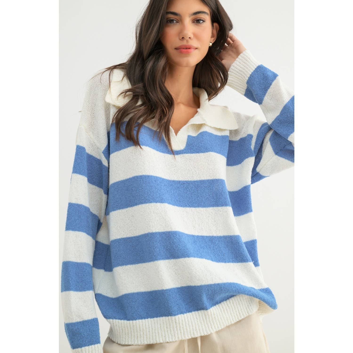 LIGHTWEIGHT COLLARED STRIPED SWEATER TOP