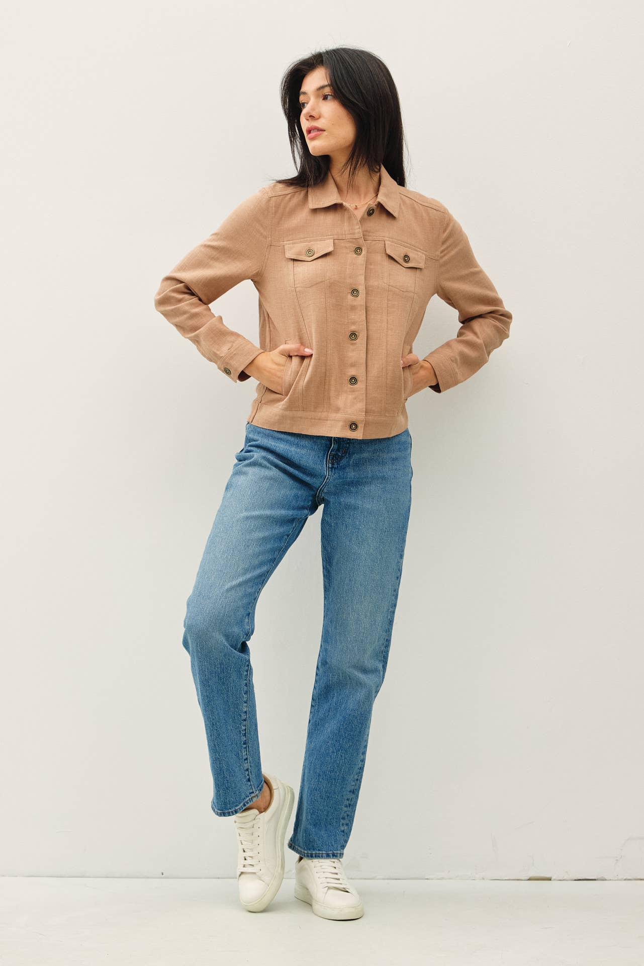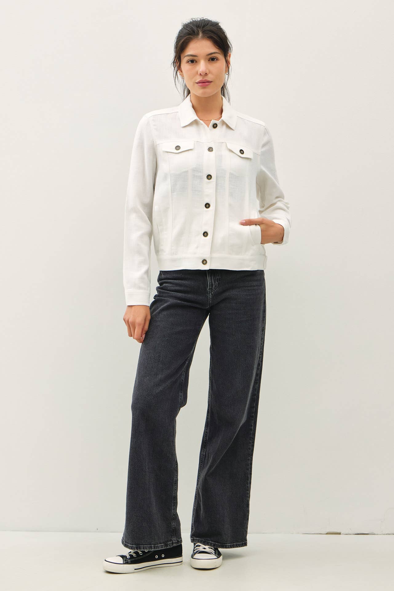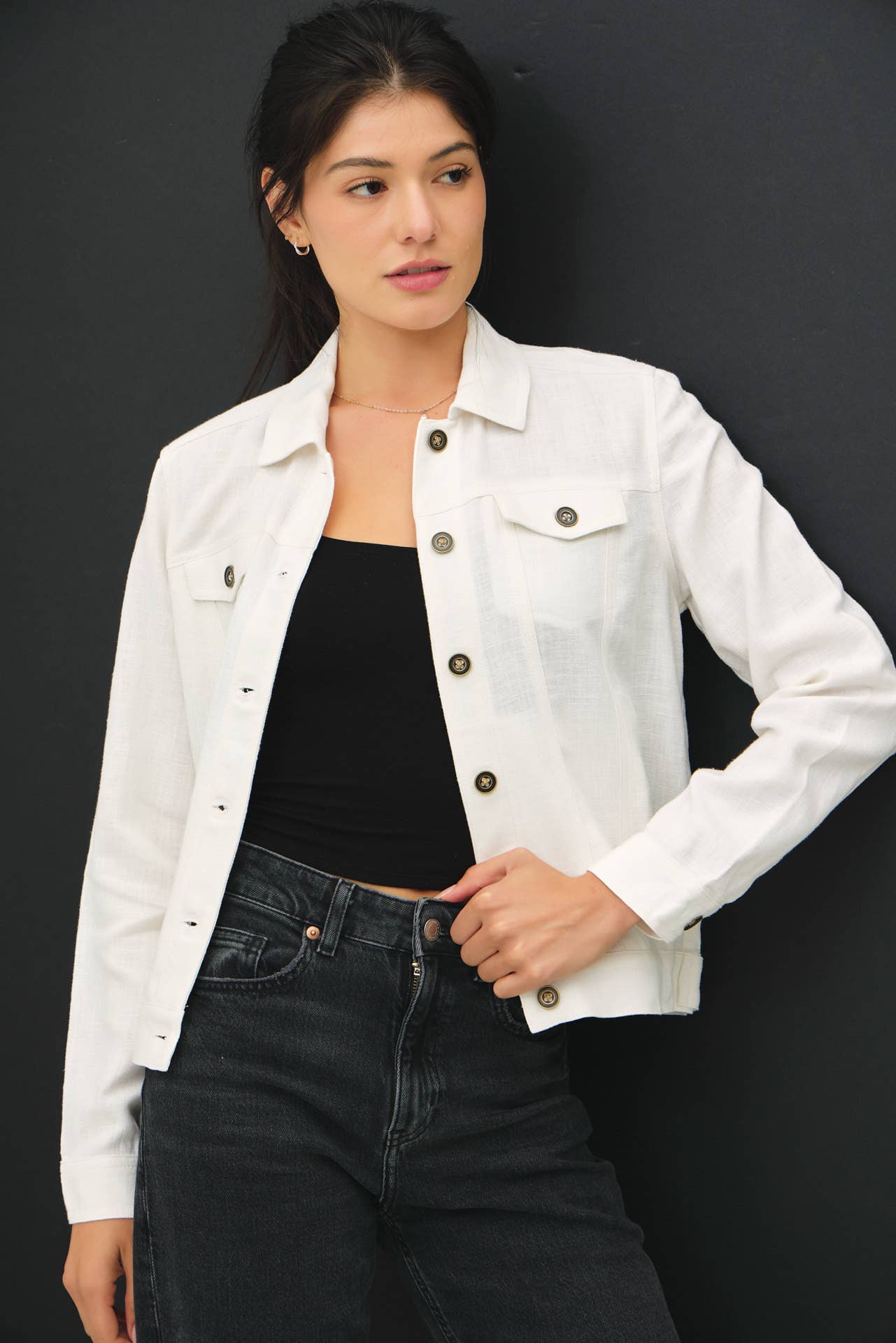LIGHTWEIGHT LINEN BLEND BUTTONED JACKET