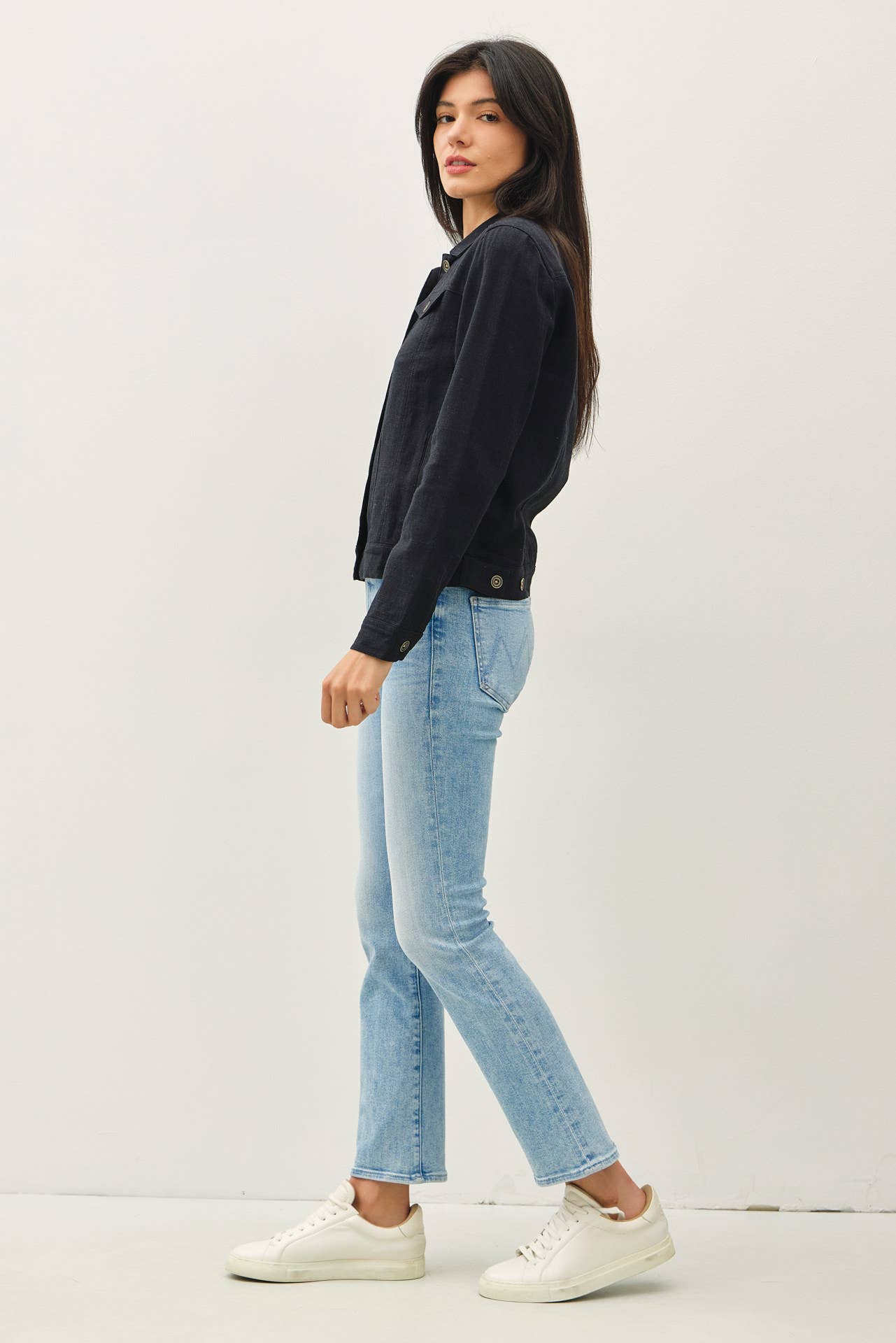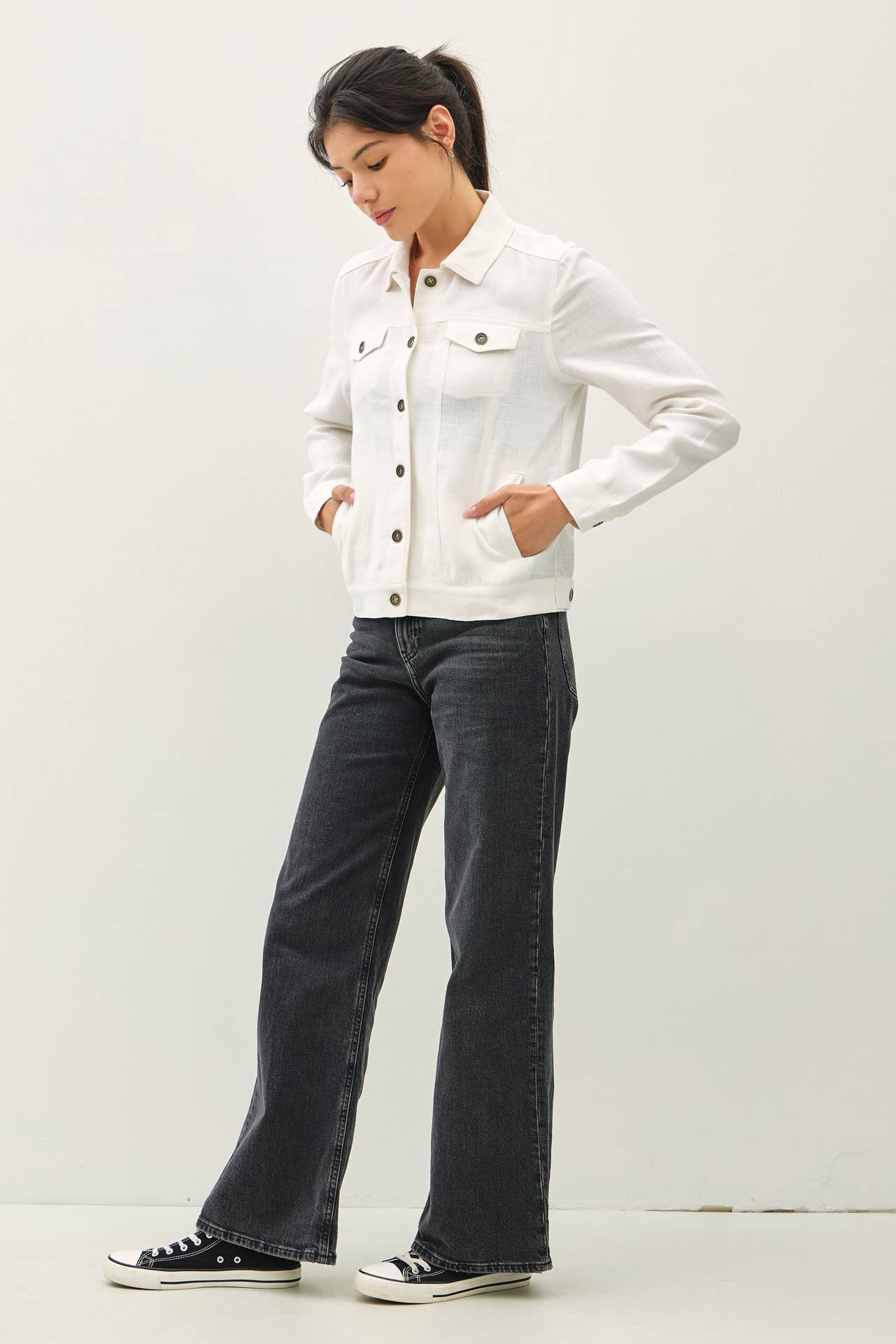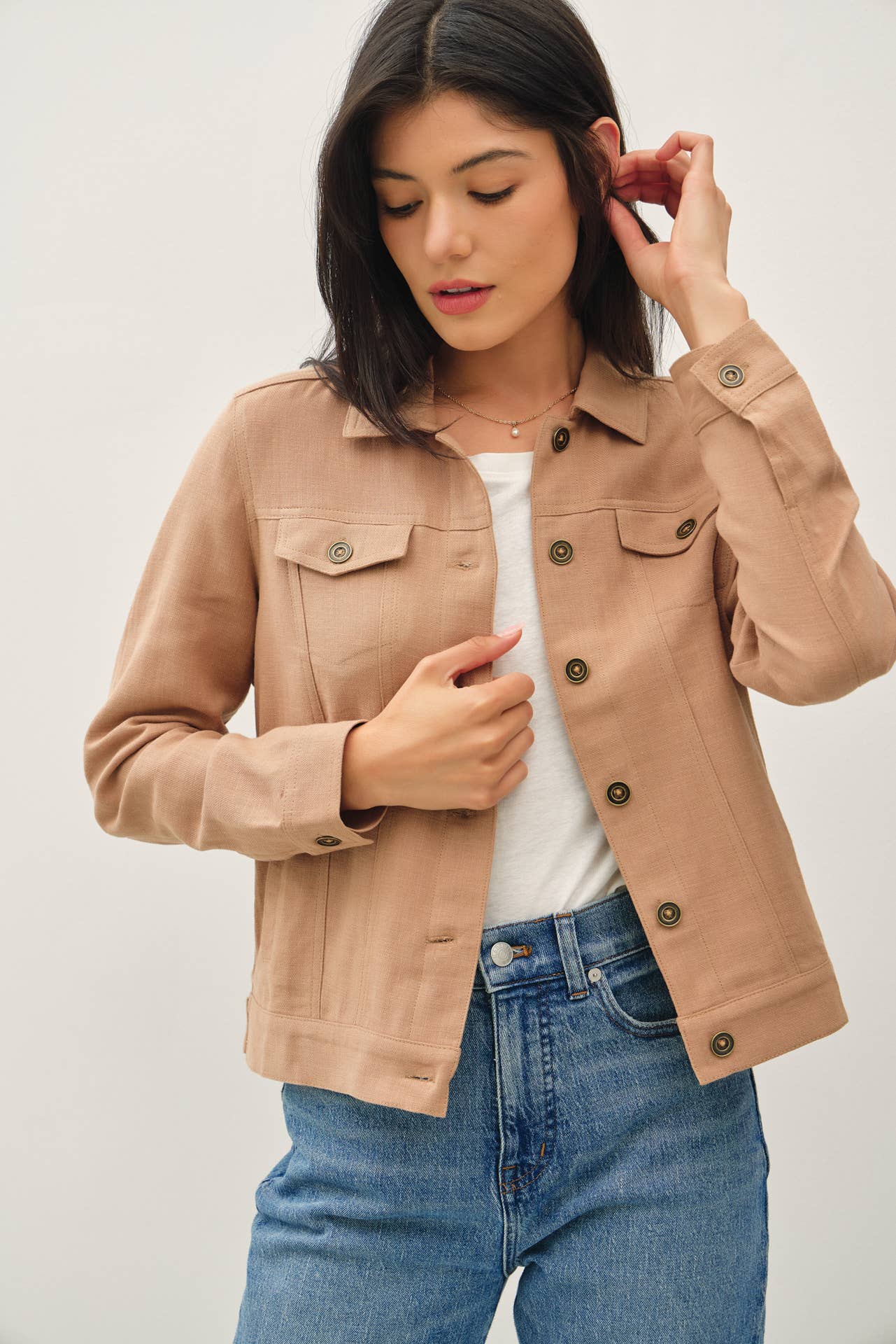 LIGHTWEIGHT LINEN BLEND BUTTONED JACKET