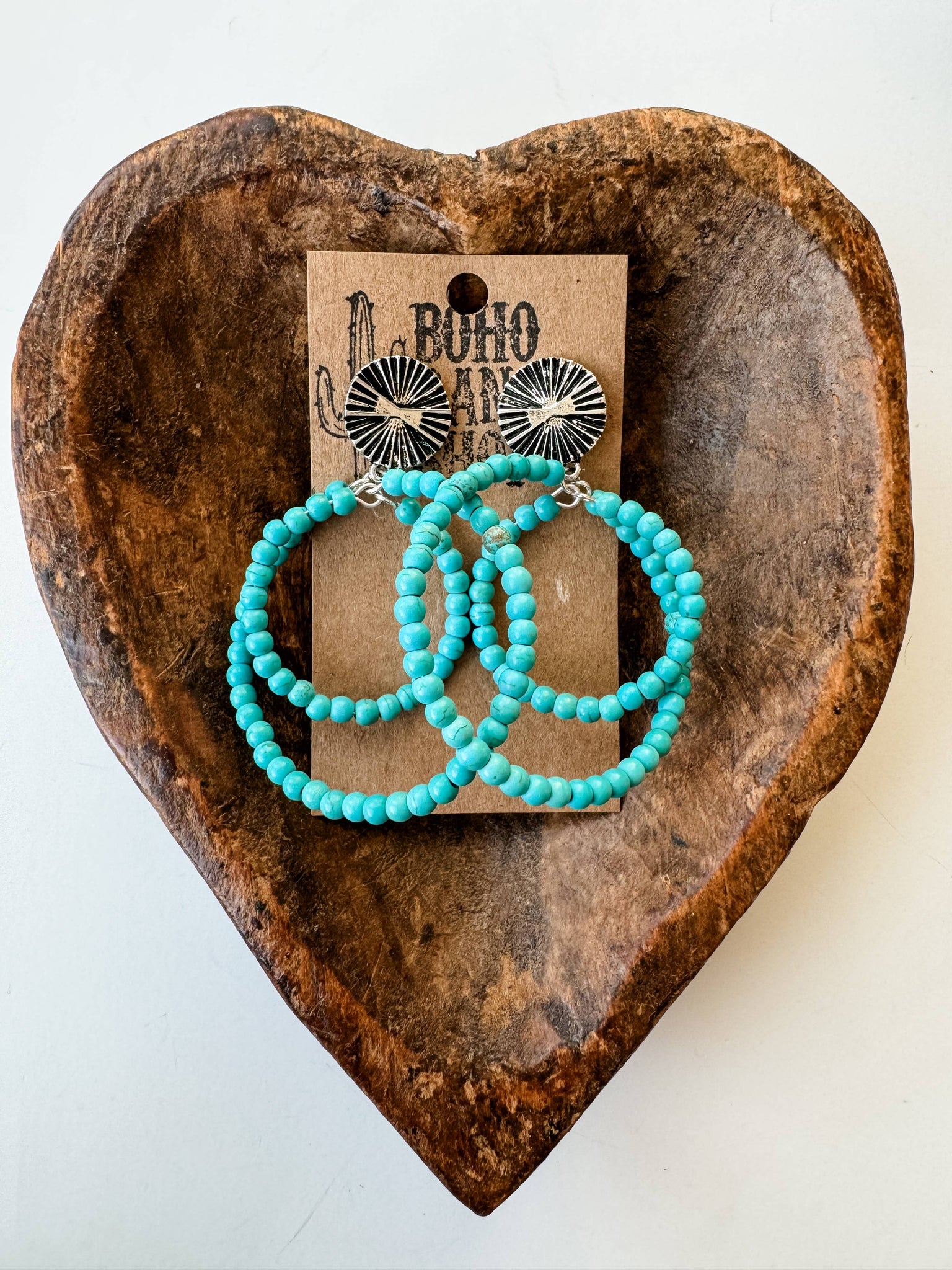 Western Round Bead Stud Post Earrings - turquoise | white - lightweight - post back